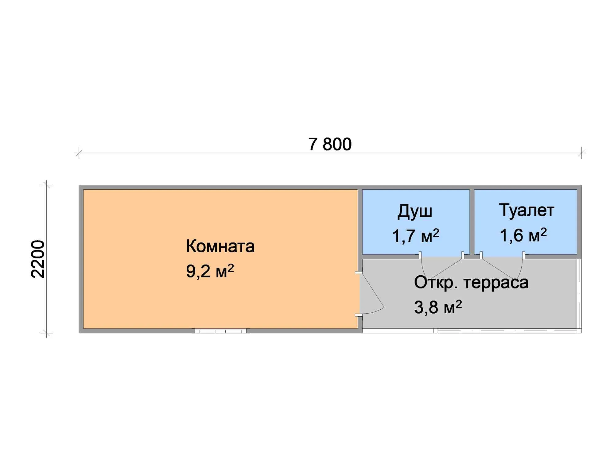 ![]() | Дачная бытовка Крокус - 9 | 7.8x2.2 | 17.16 | ![]() | ДВП-Оргалит: 155 000 | Вагонка дерев.: 166 000 | OSB: 164 000 |